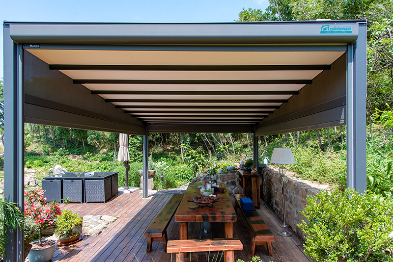 完全采用欧洲可靠的折叠蓬结构和技术,所有零部件全部采用高强度铝合金和不锈钢材料,屋顶选配LED灯带,可以选用进口和国内合资品牌的两种面料,四周可以选配格拉夫遮阳防蚊抗风帘,屋顶和四周都可以收放自如,具有很好的遮阳、隔热、保温和抗风、防蚊性能,乐享户外舒适好时光。